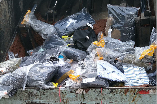 某废旧物资回收站衣物处理 2015年11月 ![]() 成都某制衣厂残次品销毁 2021年2月 |